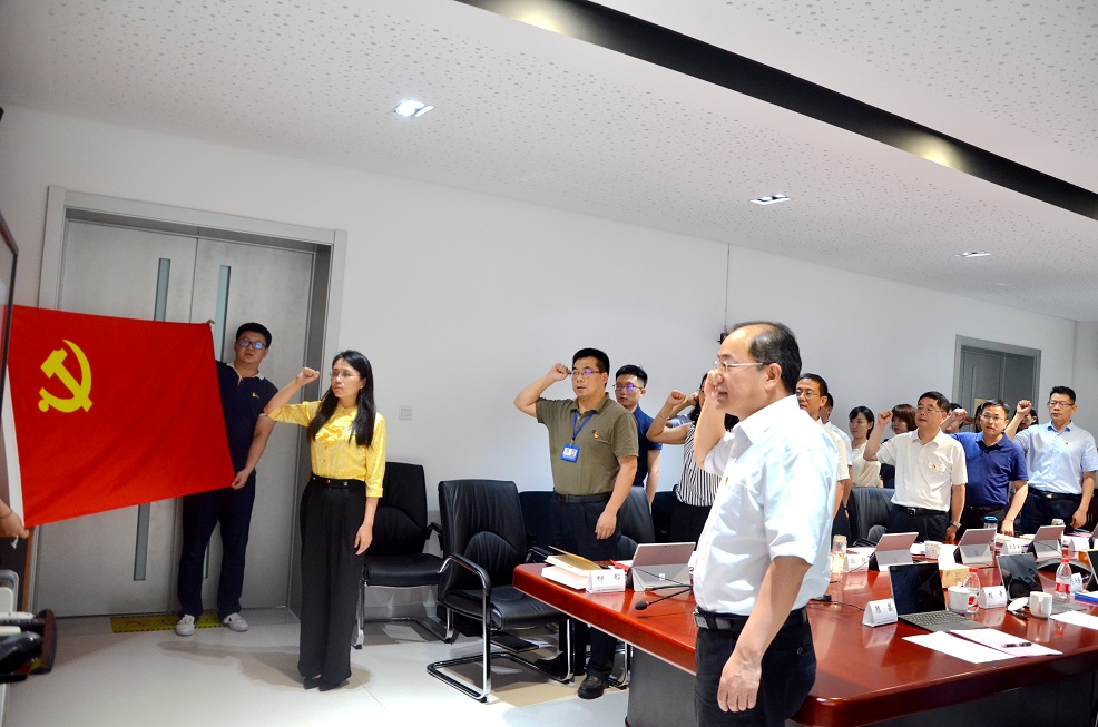 最后,全体与会人员在支部书记的带领下,在党旗前重温了入党誓词,深刻领悟了共产党人的初心和使命。