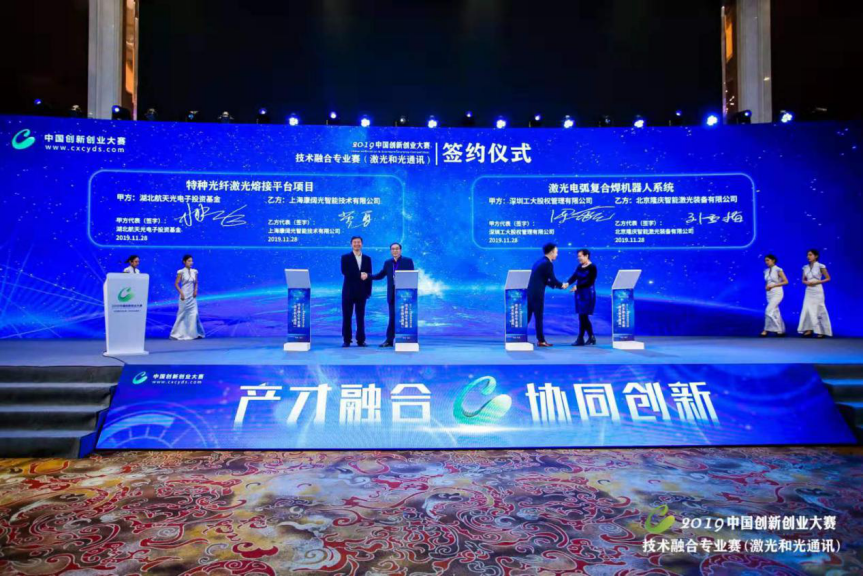 本次大赛成果斐然,激光和光通讯领域众多优质项目脱颖而出,相关行业投资机构、吴江区各区镇与参赛项目进行了深入的对接洽谈,部分优质项目与湖北航天高投光电子投资基金管理有限公司签订投资、落户意向书,国家信息光电子创新中心在技术转化方面与吴江汾湖高新技术产业开发区达成合作,共建技术转化平台。华中科技大学“碟片激光器产业化”项目进行前瞻性技术展演。