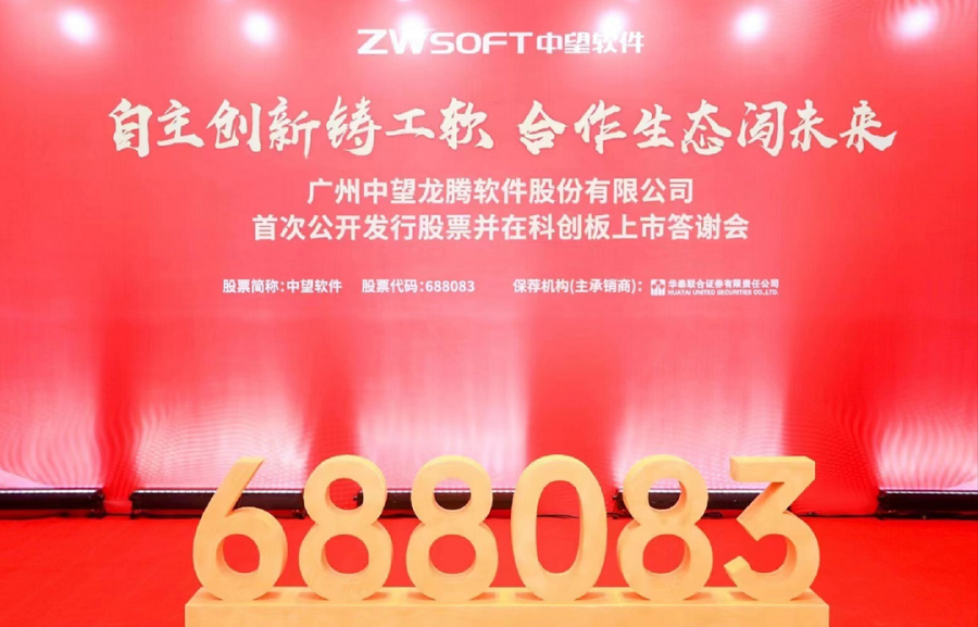 3月11日,广州中望龙腾软件股份有限公司在上海证券交易所科创板挂牌上市,股票简称“中望软件”,股票代码688083。