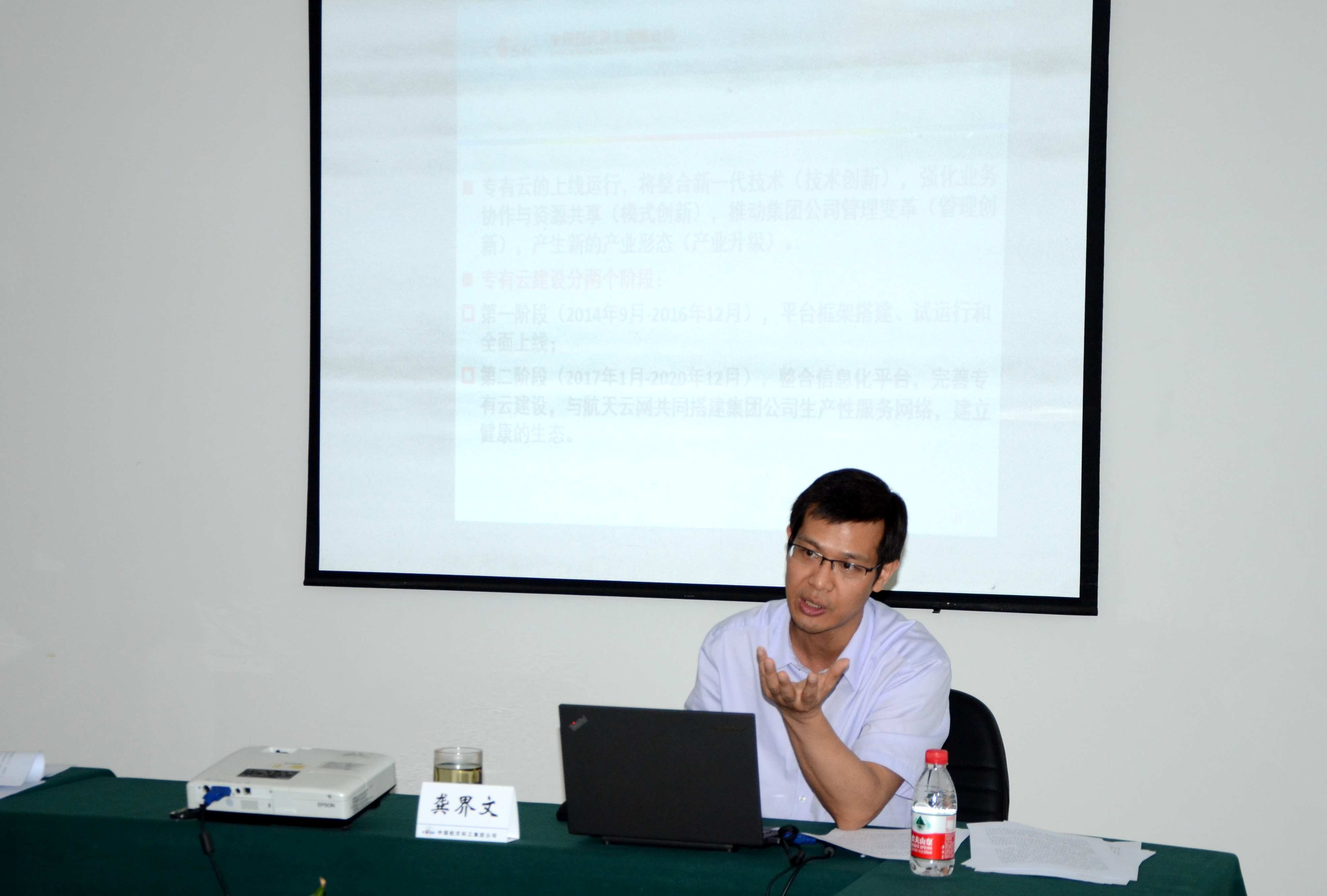 集团公司办公厅副主任龚界文以《进入智能经济时代的集团公司转型升级战略谋划与“三大平台建设”》为题,从当前所处时代及其特征,如何深入理解集团公司转型升级战略和集团公司智慧企业运行平台及专有云、航天云网“三大平台”建设等三个方面,就智能经济时代的基本特点、集团公司转型升级发展战略及重大举措的意义内涵、建设“三大平台”的思路、内容和目标及工作要求等方面进行了解读和宣贯。