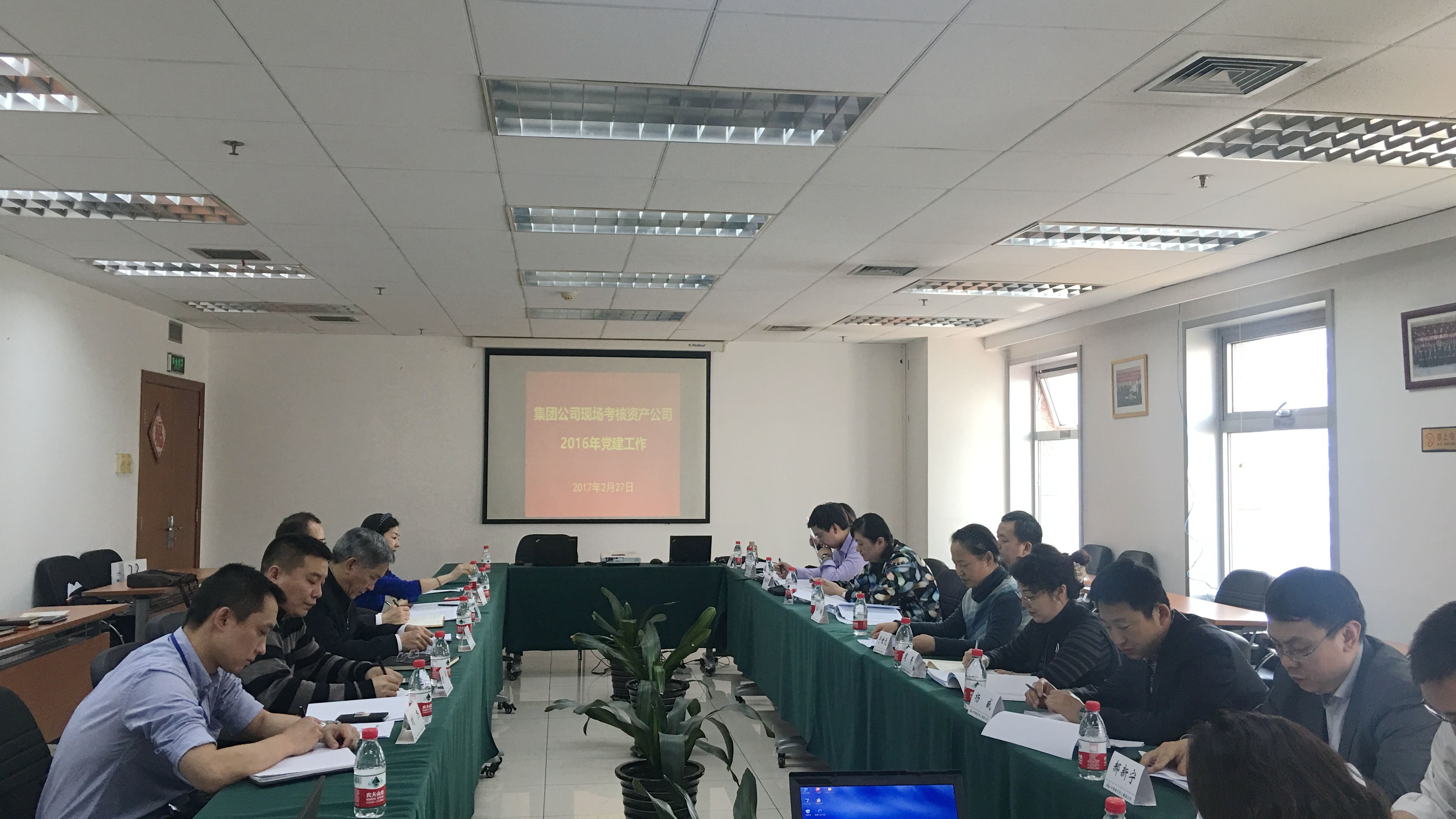 根据集团公司2016年党建工作考核的统一部署,2月27日,集团公司党建考核第二组于世元组长,集团公司党群工作部、办公厅、人事部、纪监部等考核组成员一行11人到资产公司现场考核2016年党建工作。资产公司党委书记、董事长伍青,纪委书记卢克南,公司党群部、综合部有关人员参加现场考核。