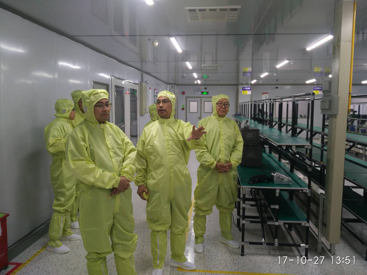 在亚派光电公司坪山基地,高辉文总经理一行首先来到生产一线,参观了新投入运行的生产车间,详细了解有关产品研发、工艺流程和安全生产等情况,看望慰问了奋战在一线的干部员工。