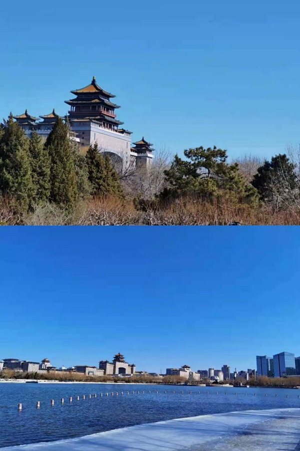 老舍先生在《北京的春节》里开篇写的便是腊八,所以在我这个外乡人的想象中,北京的春节是腊八蒜腌制后的翡翠色。2020年因突发疫情第一次留京过年,印象中天总是灰色的,和当时的心情一样。如今时隔一年,形势变化明显,虽没能回乡过年,但心态却和去年截然不同。与家乡热闹的亲朋聚会不同,在北京的春节属于我们小小的家庭,一家人香山登高、八一湖滑冰、莲花池畅游,也学着自己动手捏年猪、腌制腊八蒜,简单而温馨,晴好的日子里随手留影,发现2021年北京的春节其实是蓝色的。