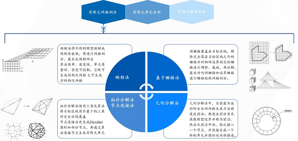此外,另一CAE的核心技术是数值分析求解方法,如现在广泛应用的有限元法。有限元分析是一个基于CAD几何模型来建立CAE有限元模型的过程,主要分为有限元网格剖分、有限元单元分析以及有限元整体分析三个步骤,其中有限元网格剖分则是整个过程中的重中之重,因为有限元拆的越细,从数学角度越难,壁垒越高。采用这些数值分析方法,实现结构的离散化,即将实际结构离散为有限数目的规则单元组合体,实际结构的物理性能可以通过对离散体进行分析,得出满足工程精度的近似结果来替代对实际结构的分析,这样可以解决很多实际工程需要解决而理论分析又无法解决的复杂问题。